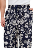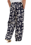 Широкий свободный крой не облегает, позволяя воздуху циркулировать в жаркие дни. Эластичный пояс на резинке обеспечивает комфортную посадку без ремня. Два задних кармана добавляют функциональности. Широкая штанина к низу создаёт расслабленный силуэт в духе свободных странников.