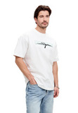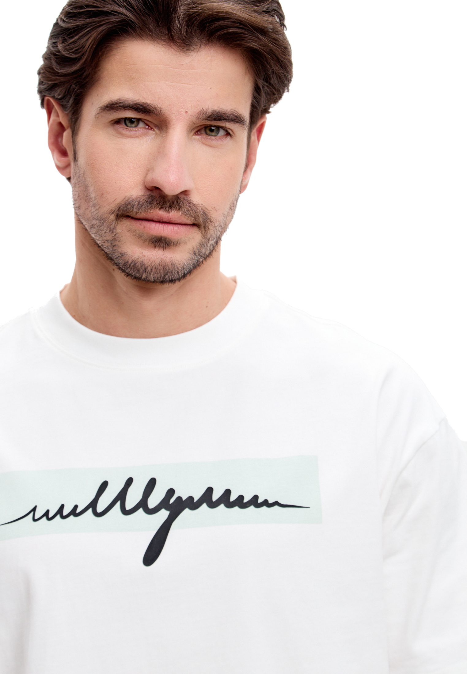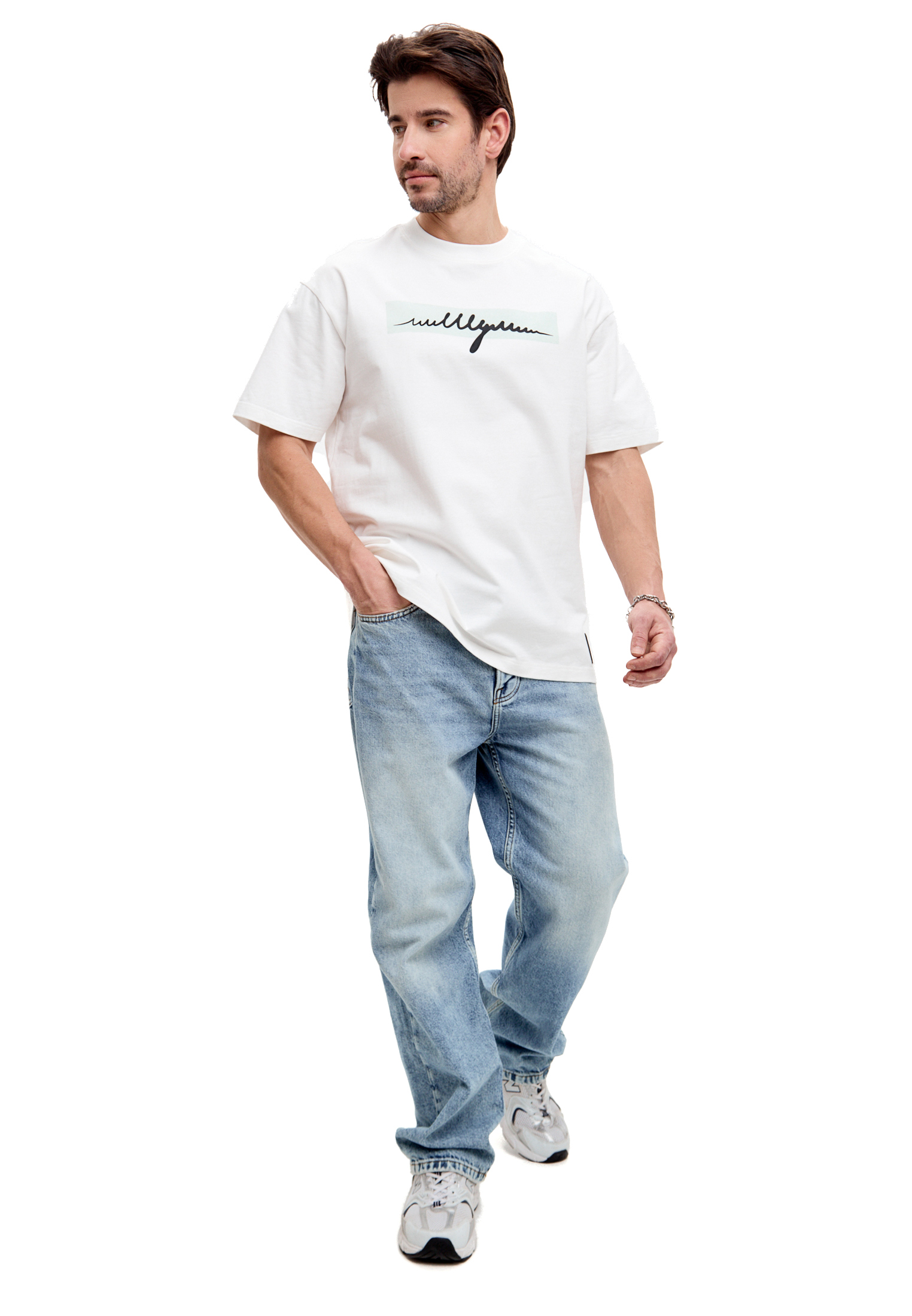 Мужская футболка оверсайз с принтом для тех, кто слышит эхо индустриальной эпохи в ритме современного города. Белая хлопковая основа становится архивом визуальных кодов - там, где забытые символы обретают новую жизнь.