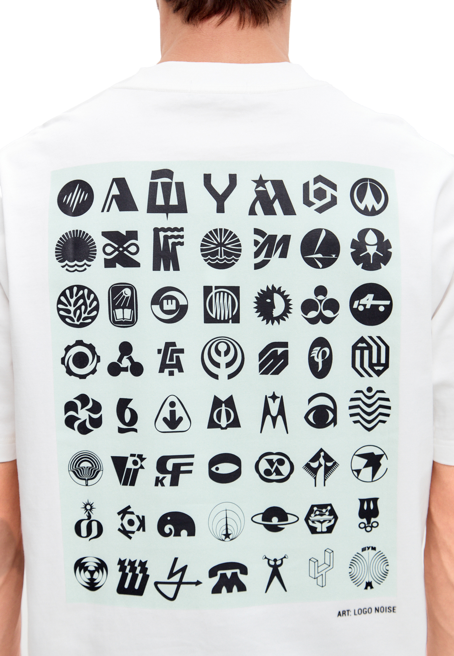 Принт ЛОГО ШУМ - это археология советского дизайна, собранная в единый визуальный манифест. Логотипы заводов, фабрик и производств, которые создавали шум прогресса прошлого века, теперь звучат на твоей спине. Каждый символ - история, каждая линия - память о тех, кто строил будущее своими руками. Мятный квадрат с черными иконками - окно в эпоху, когда дизайн служил идее.