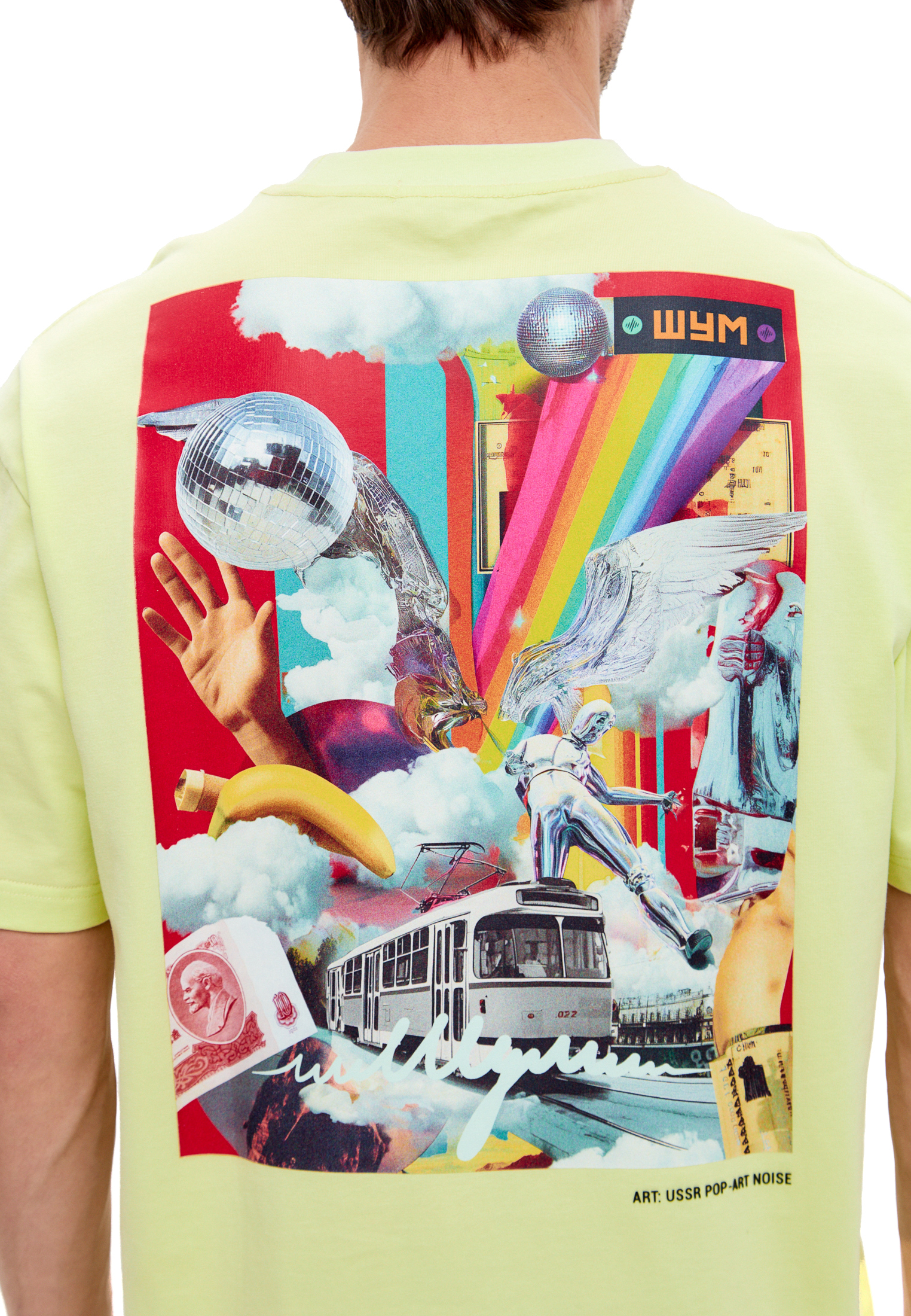 Футболка-манифест для тех, кто помнит будущее и видит прошлое в новых красках. Яркий лимонный цвет прорывается сквозь серость улиц, как сигнал из параллельной вселенной, где советская эстетика встретилась с цифровым безумием.