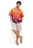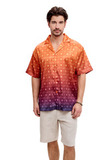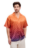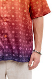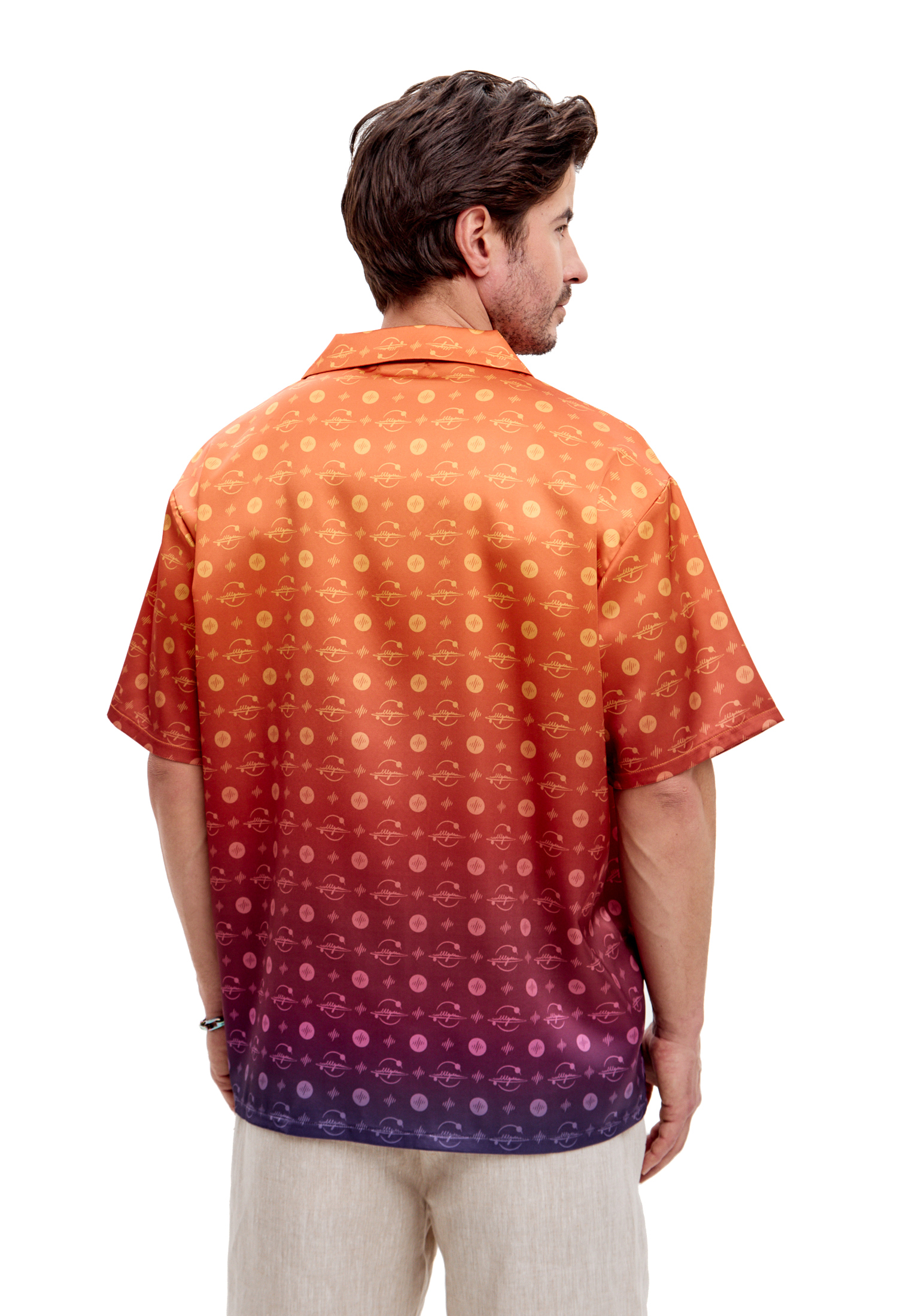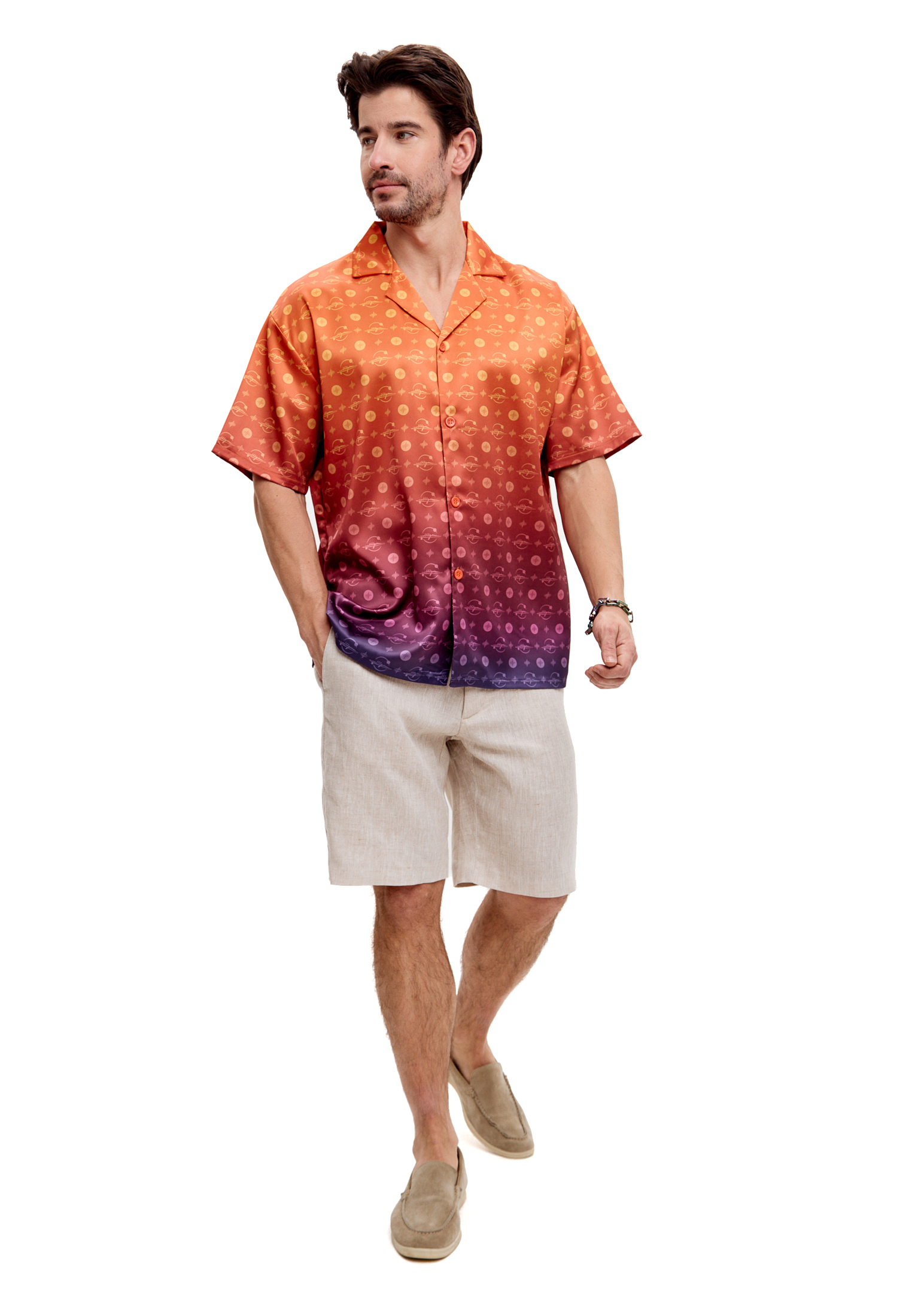 Летняя рубашка для тех, кто ловит закаты городских крыш и превращает их в личный дресс-код. Создана на границе дня и ночи, где оранжевое небо растворяется в фиолетовых сумерках движения ШУМ.