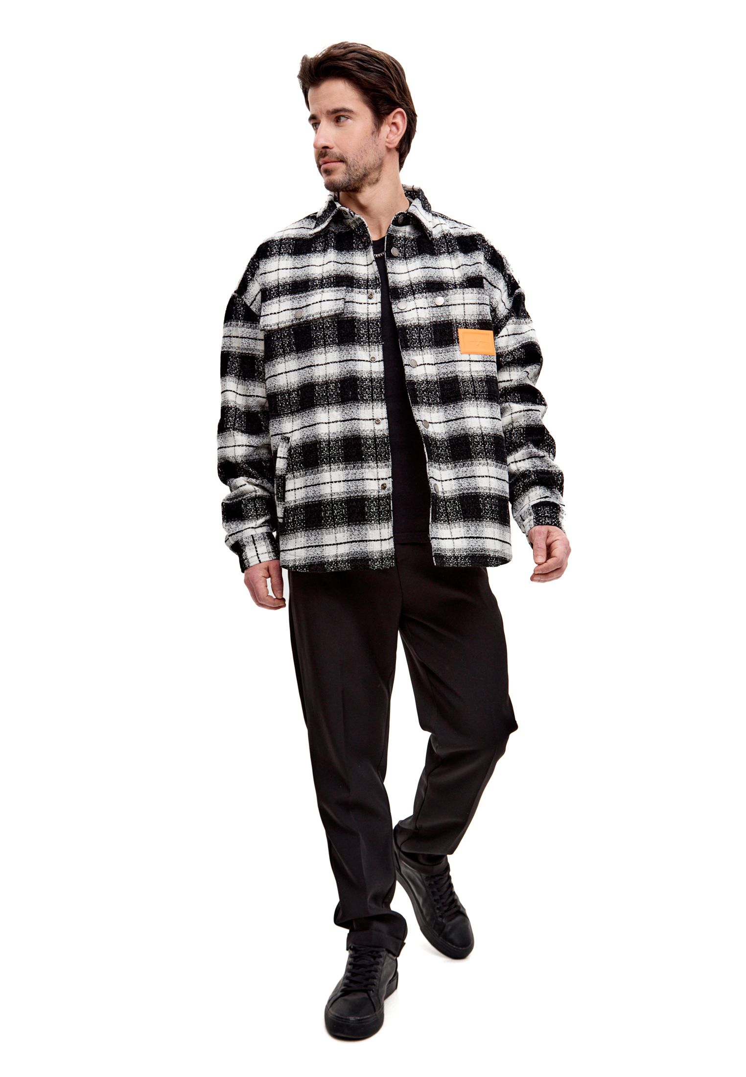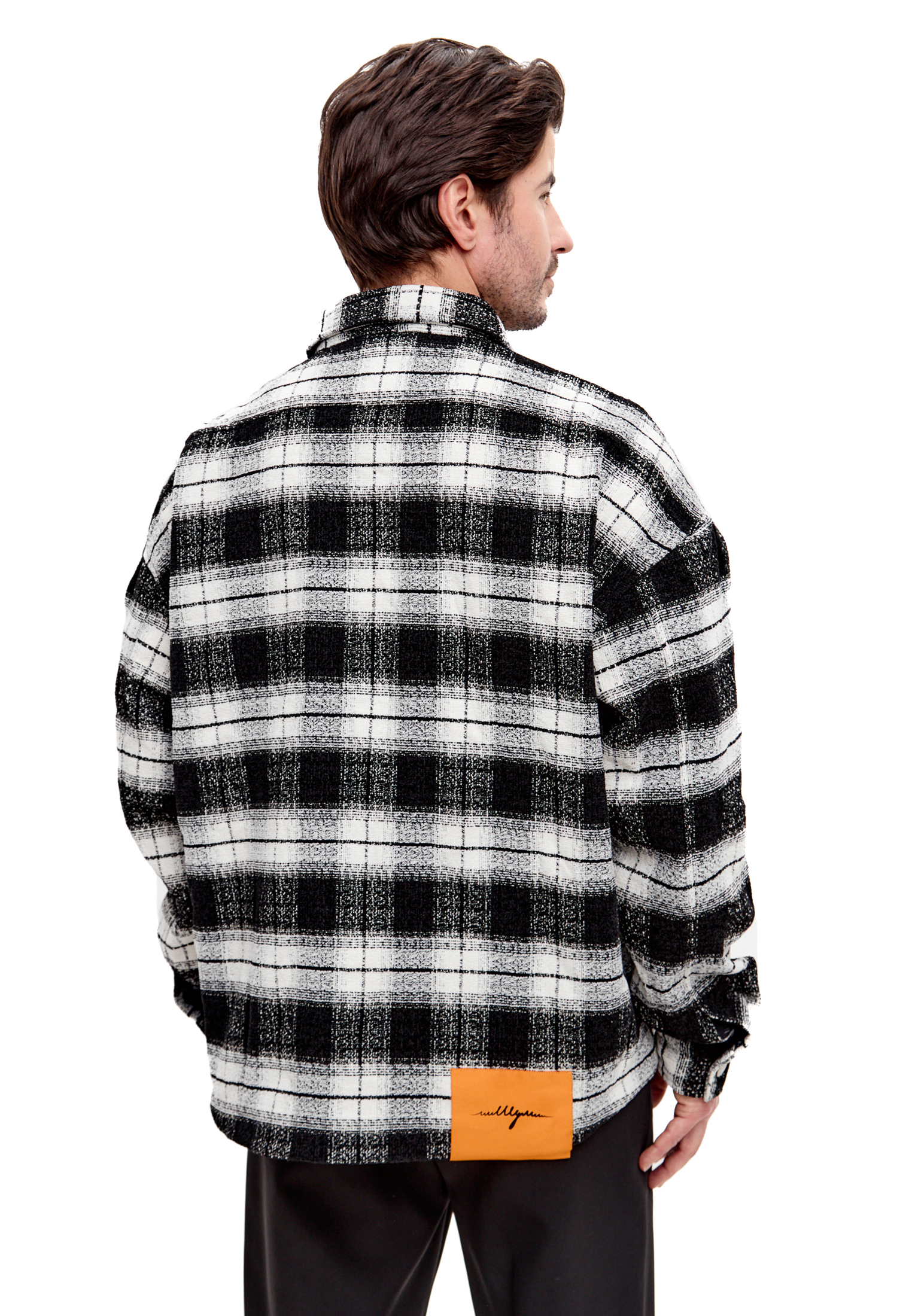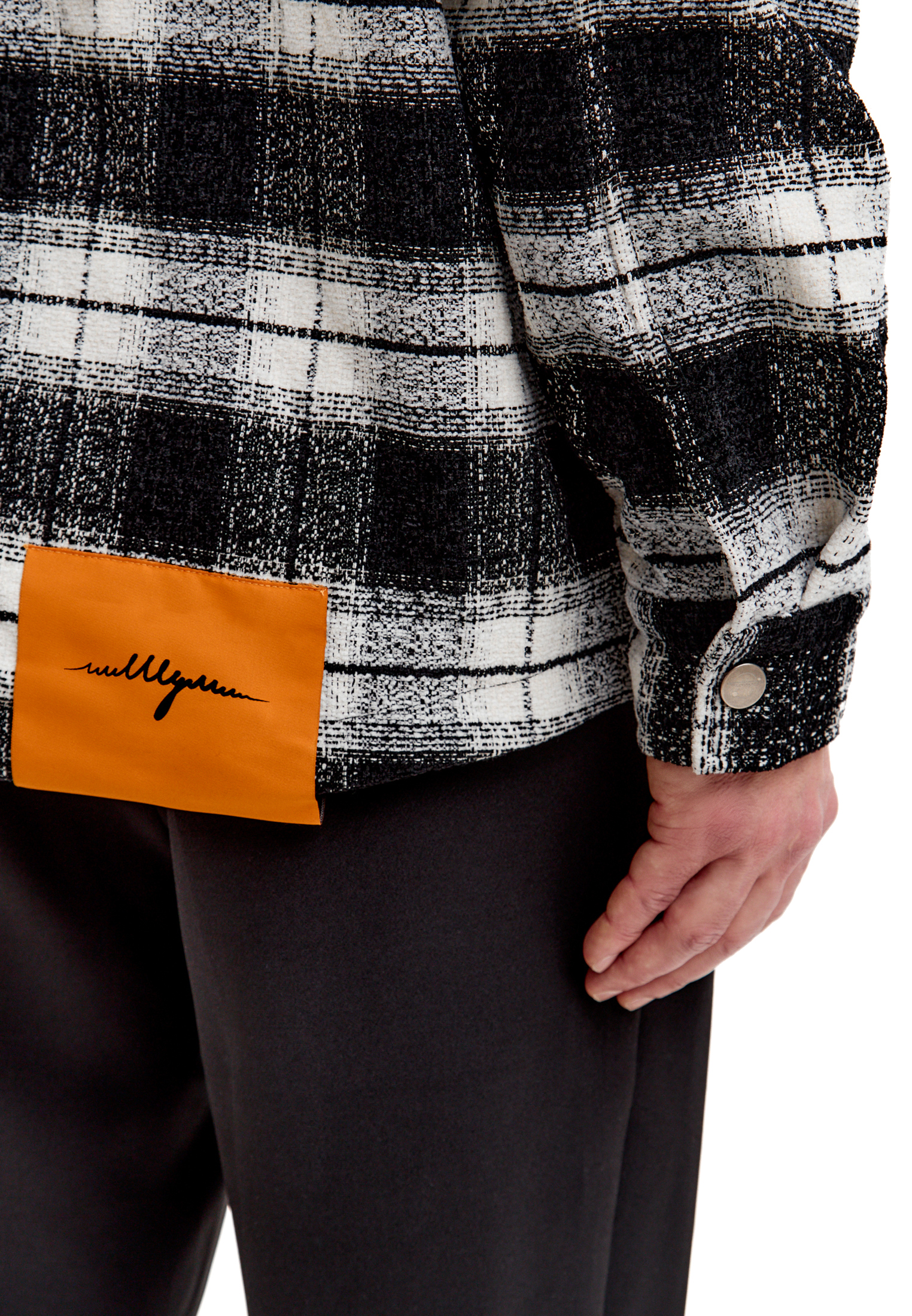 Внутренняя подкладка выполнена с фирменной монограммой ШУМ по всей поверхности — скрытая деталь для тех, кто понимает. Классический черно-белый клетчатый паттерн универсален и сочетается с любым гардеробом от базовых футболок до худи.